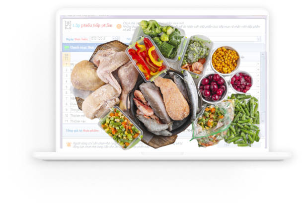 Với chức năng lập phiếu tiếp phẩm, phần mềm sẽ tự động tổng hợp nhu cầu sử dụng trong ngày và phân tích dữ liệu để thiết lập phiếu tiếp phẩm trong đó phân loại thực phẩm mua mới và thực phẩm tồn kho. In ấn các bảng biểu để hỗ trợ công tác tiếp phẩm, mua hàng, kiểm thực và nhập, xuất kho thực phẩm.